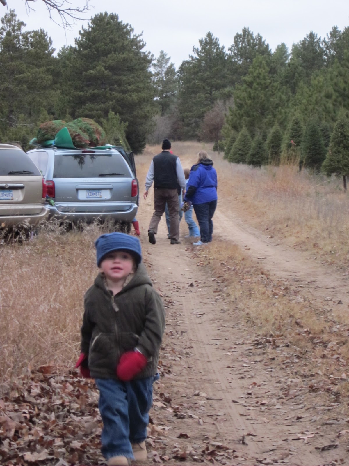 Such a fun day though, and we picked out a real beauty.  It can actually be pretty stressful, wandering around trying to really visualize how certain trees will work (read: fit) in our small home.  (This year I think we actually did it... we didn't underestimate the size of the tree and end up with something that takes up our entire dining room!)  And then there is some added stress when you throw into the mix a toddler and a dangerously encroaching nap time.  One moment he'd be having a blast, running around wildly and fully enjoying the open space, and then all of a sudden he'd appear at my feet, pulling at my pant leg with snot running down his face, whining, "Carry you mommy, carry you!"